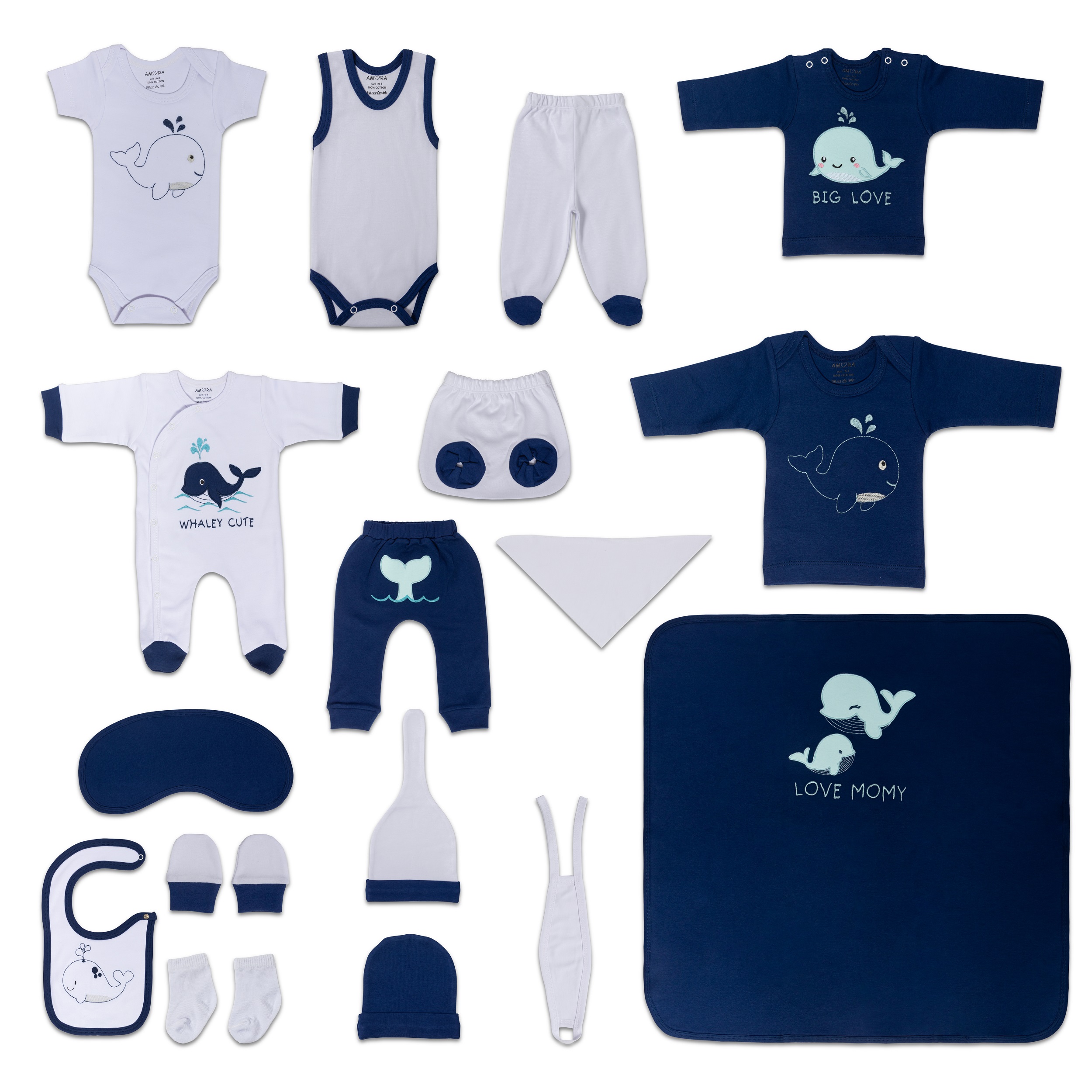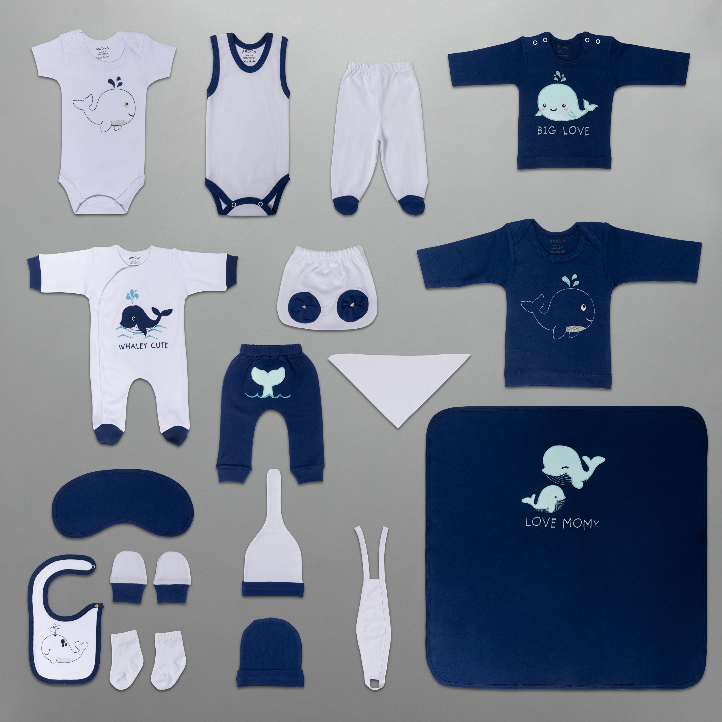 کامل ترین ست 19 تیکه نوزادی بیمارستانی برند آمورا که از پارچه صد در صد پنبه کاملا ضد حساسیت و مناسب چهار فصل سال تولید شده است. این ست مناسب همه نوزادان مخصوصا نوزادان با پوست حساس تر می باشد که در تولید آن از هیچ نوع رنگ مصنوعی که باعث ایجاد هرگونه حساسیت خواهد شد, استفاده نشده است. رنگ این محصول کاملا گیاهی می باشد و گلدوزی های آن با استفاده از نخ های ضد حساسیت انجام شده است و برای جلوگیری از ایجاد التهاب در اثر سایش, یک پارچه مخصوص و ضد حساسیت پشت گلدوزیها دوخته شده است که مانع از تماس آنها با پوست کودک می شود. این مجموعه 19 تکه بیمارستانی تمامی نیازهای ابتدایی نوزادان در بیمارستان و تا 3 ماهگی در منزل را برآورده می کند. تکه های این مجموعه شامل: 1- بلوز 2- شلوار فانتزی 3- شلوار جوراب دار 4- سرهمی جوراب دار 5- بادی آستین کوتاه 6- بادی آستین بلند 7- رکابی زیر دکمه 8- شورت عینکی 9- کلاه گرد 10- کلاه فانتزی 11- پیش بند 12- آروغ گیر 13- یک جفت دستکش 14- یک جفت جوراب 15- روسری ( دستمال ) 16- ناف بند 17- پتو کلاه دار ( که با توجه به ابعاد آن تا 2 سالگی قابلیت استفاده دارد ).
