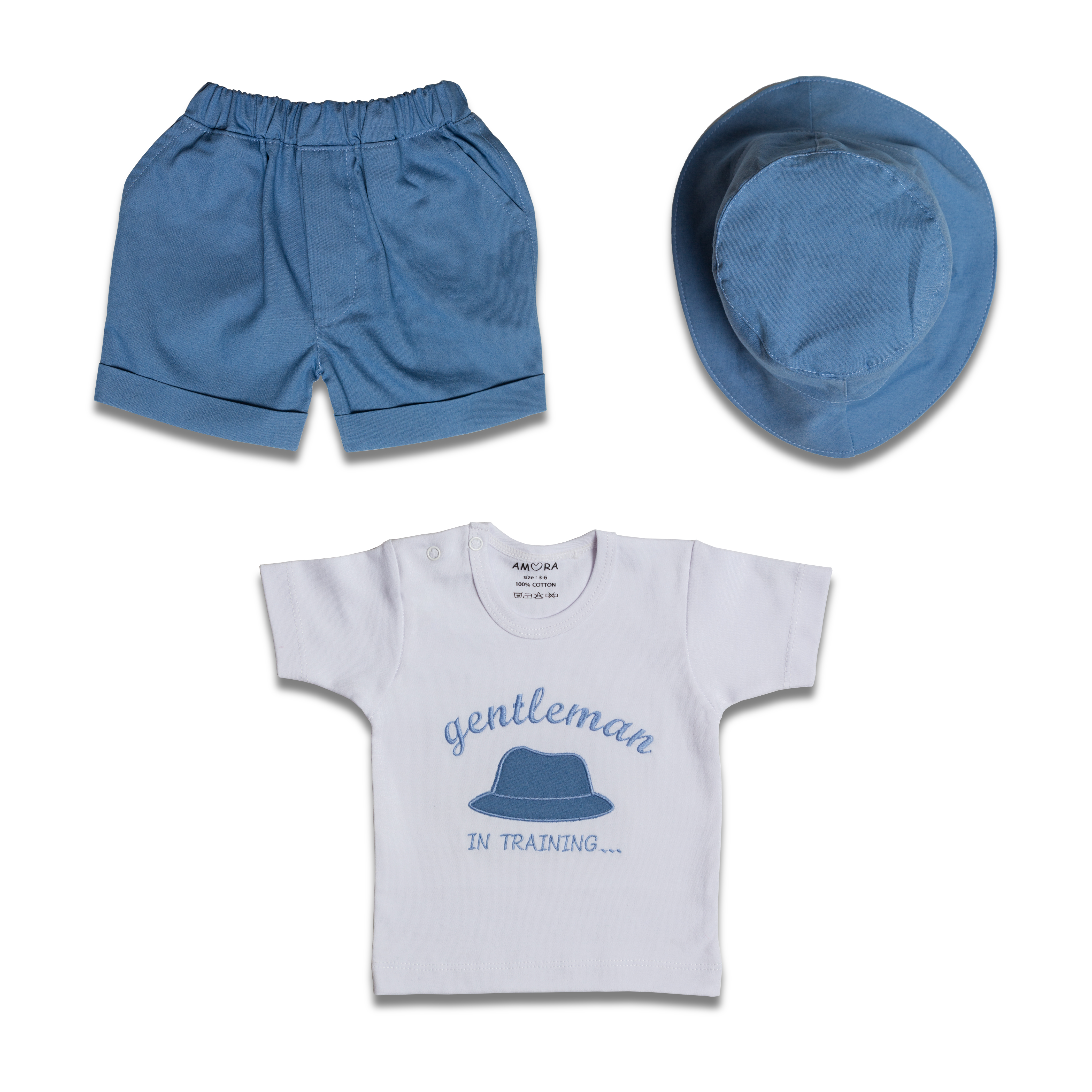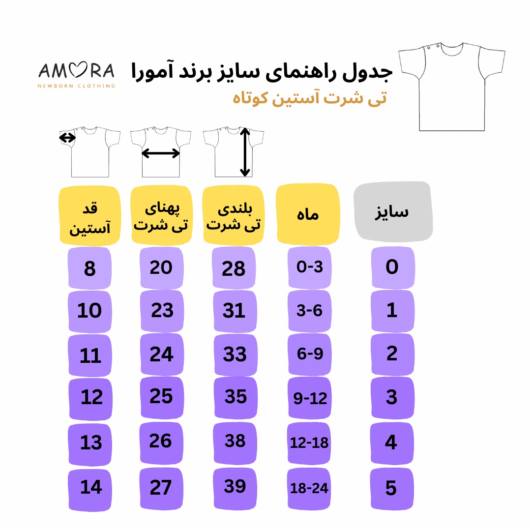 ست تی شرت و شلوارک نوزادی آمورا مدل gentleman با جنس صد در صد نخ و کاملا ضد حساسیت که بر اساس انتخاب سایز صحیح, مناسب نوزادان از بدو تولد تا دو سالگی می باشد. پارچه و رنگهای استفاده شده در این محصولات کاملا در برابر شستشوی زیاد مقاوم بوده و از ثبات و کیفیت بالایی برخوردار است.محصولات آمورا با توجه به حساسیت زیاد پوست و سلامت نوزادان, به صورت کاملا بهداشتی تولید و بسته بندی میگردد تا سلامت دلبندان شما به خطر نیافتد.جهت اطلاع از نحوه شستشو, لطفا به علامتهای شستشو روی بسته بندی محصول توجه فرمایید.
