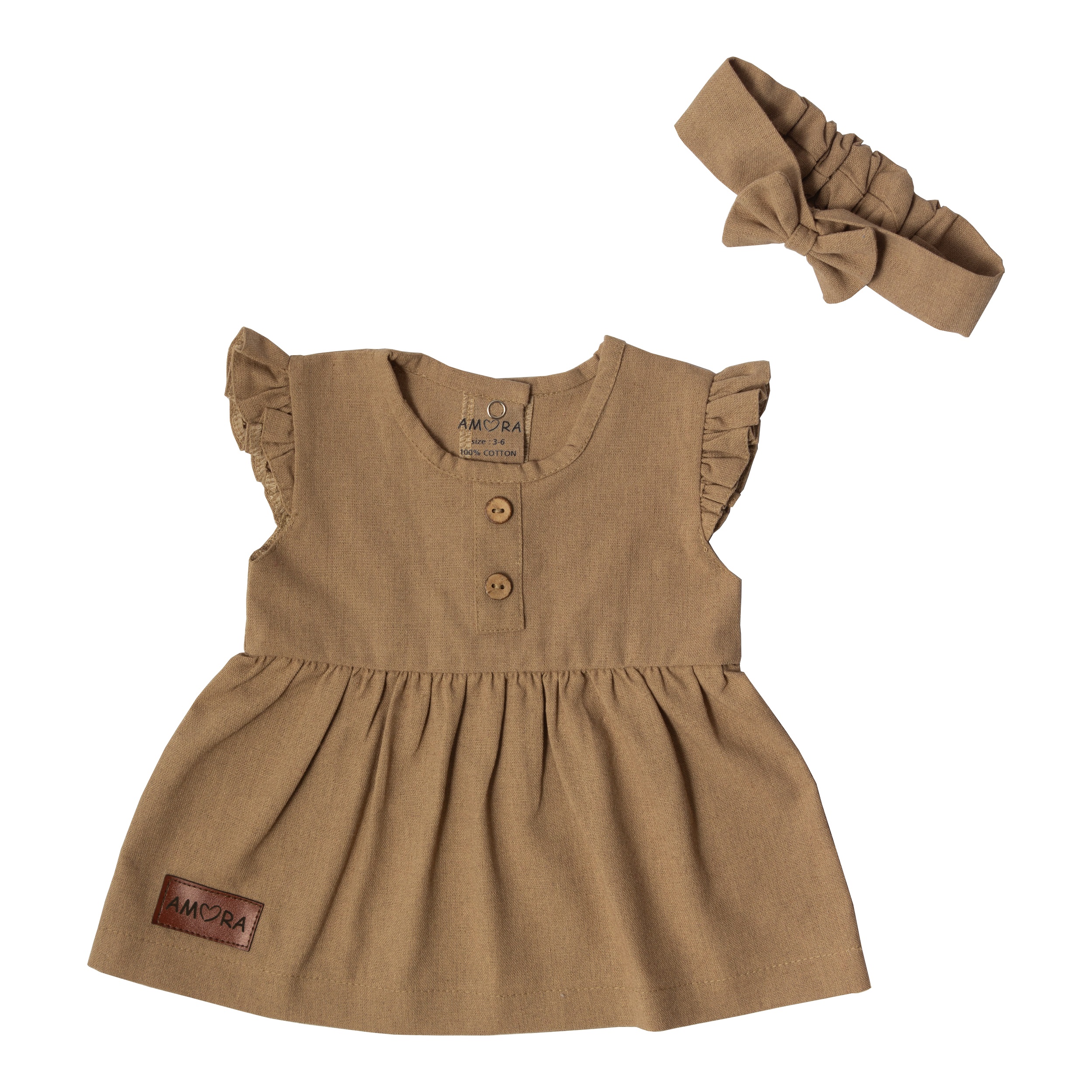 ست پیراهن و هدبند نوزادی آمورا مدل yasmin رنگ نسکافه ای با جنس صد در صد نخ و کاملا ضد حساسیت که بر اساس انتخاب سایز صحیح, مناسب نوزادان از بدو تولد تا دو سالگی می باشد.از ویژگی های محصولات آمورا استفاده از طراحی استاندارد متناسب با آناتومی بدن کودک می باشد که توسط تیمی از مشاورین پزشکی, روانشناسی و طراحان لباس مطابق با آخرین متدهای طراحی و دوخت انجام می شود.هم چنین پارچه و رنگهای استفاده شده در این محصولات کاملا در برابر شستشوی زیاد مقاوم بوده و از ثبات و کیفیت بالایی برخوردار است.محصولات آمورا با توجه به حساسیت زیاد پوست و سلامت نوزادان, به صورت کاملا بهداشتی تولید و بسته بندی میگردد تا سلامت دلبندان شما به خطر نیافتد.جهت اطلاع از نحوه شستشو, لطفا به علامتهای شستشو روی بسته بندی محصول توجه فرمایید.