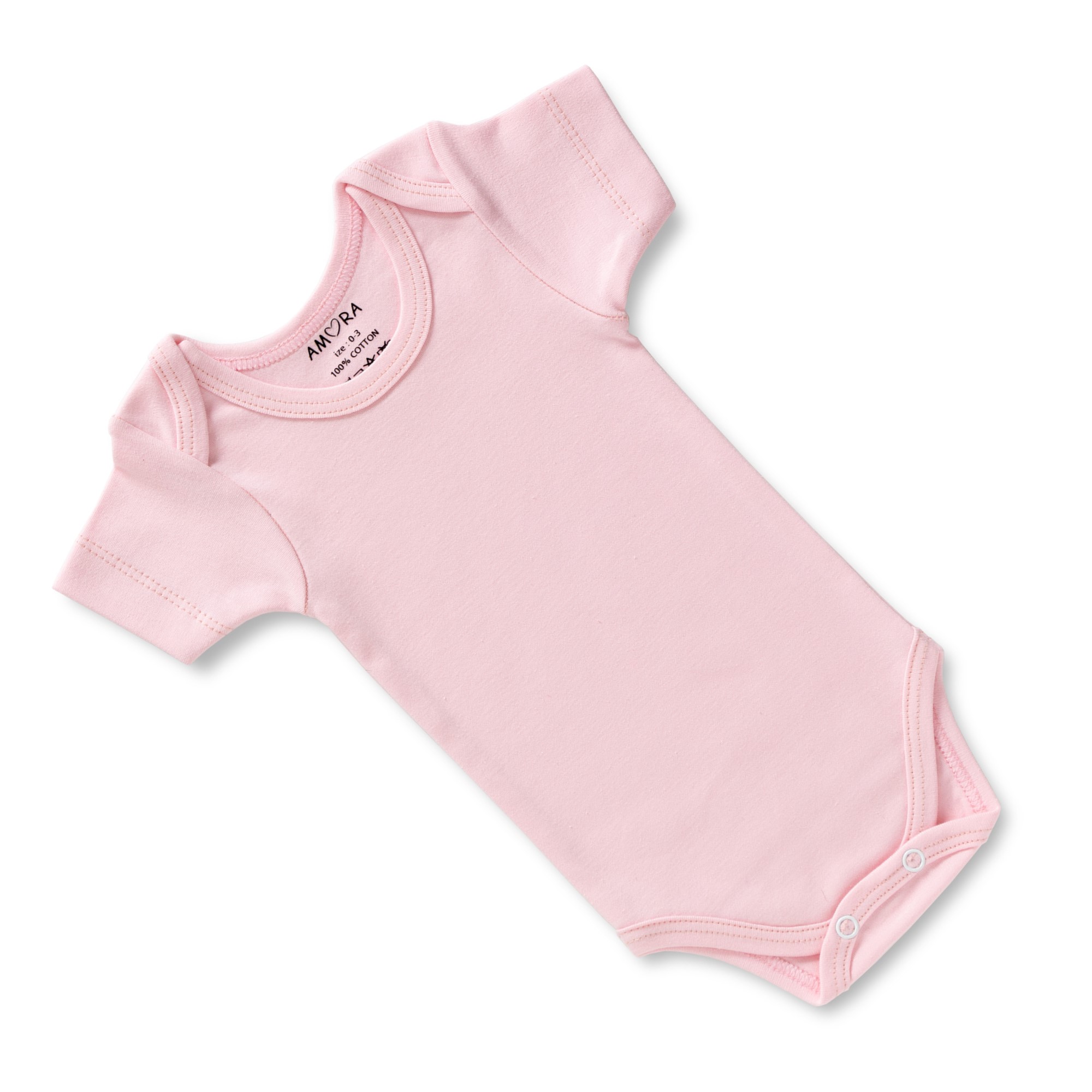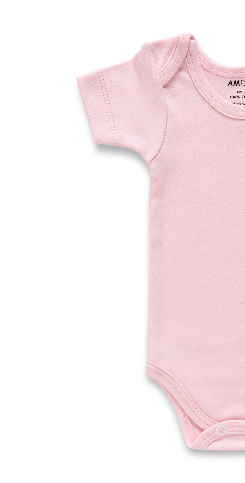 بادی آستین کوتاه نوزادی آمورا مدل plain صورتی