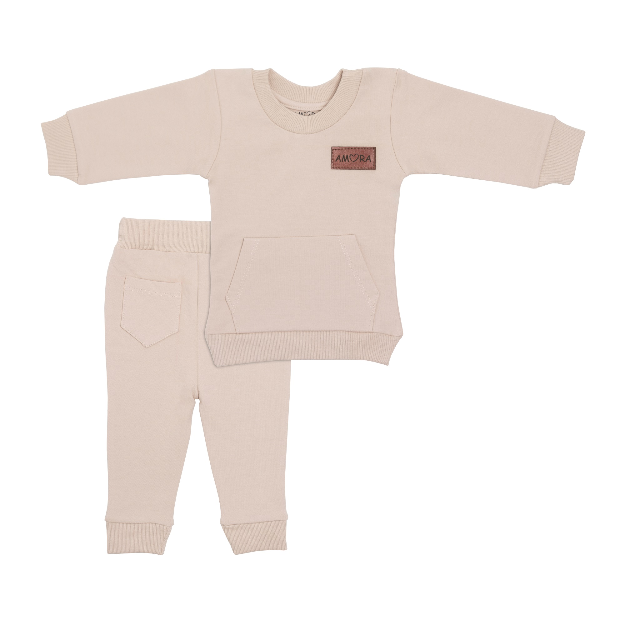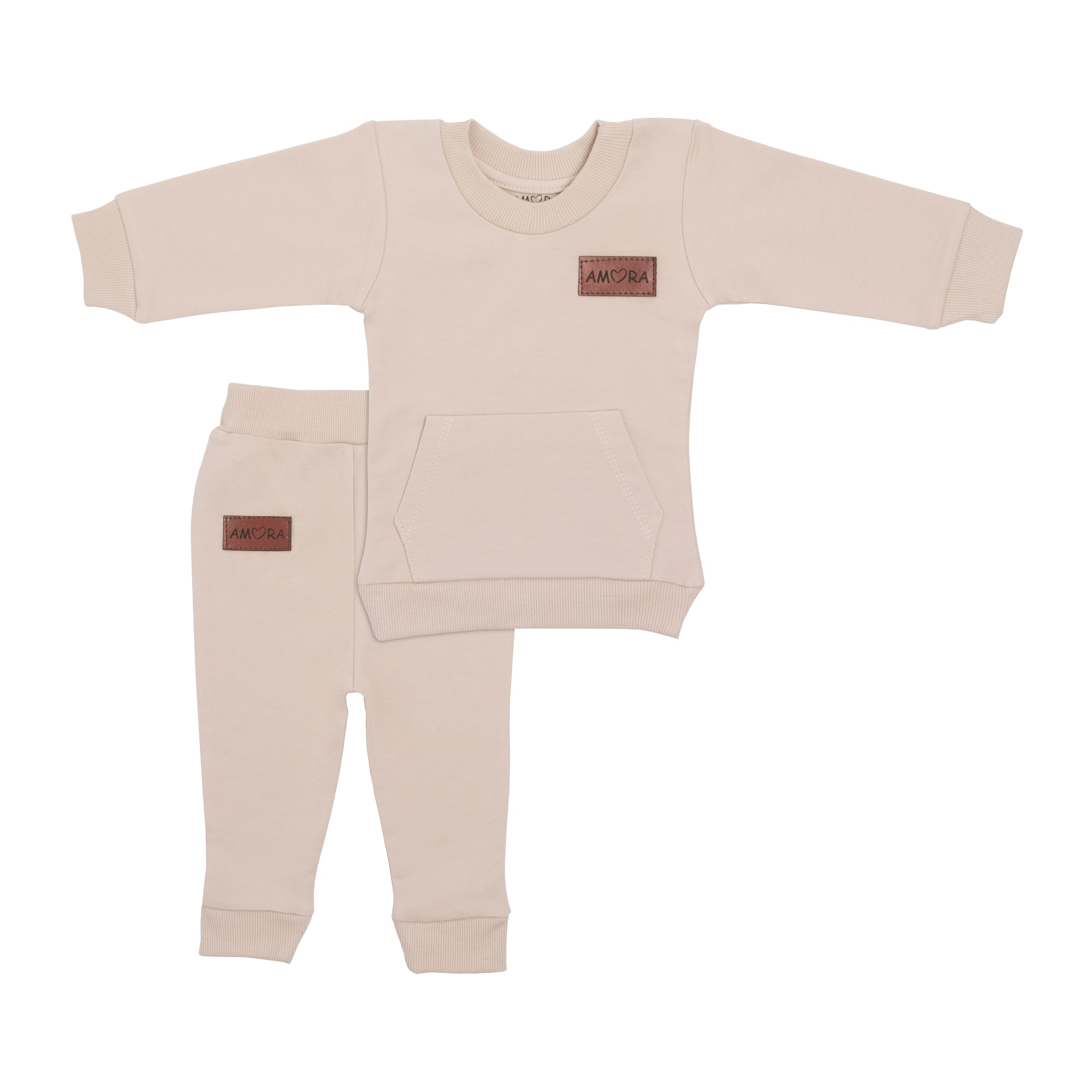 ست سوییشرت و شلوار نوزادی برند آمورا کرم رنگ از جنس دورس دو نخ پنبه ای و کاملا ضد حساسیت که بر اساس انتخاب سایز صحیح, مناسب نوزادان از بدو تولد تا دو سالگی می باشد. از ویژگی های محصولات آمورا استفاده از طراحی استاندارد, متناسب با آناتومی بدن کودک می باشد که توسط تیمی از مشاورین پزشکی, روانشناسی و طراحان لباس مطابق با آخرین متدهای طراحی و دوخت می باشد. هم چنین پارچه و رنگهای استفاده شده در این محصولات کاملا در برابر شستشوی زیاد مقاوم بوده و از ثبات و کیفیت بالایی برخوردار است. محصولات آمورا با توجه به حساسیت زیاد پوست و سلامت نوزادان, به صورت کاملا بهداشتی تولید و بسته بندی میگردد تا سلامت دلبندان شما به خطر نیافتد. جهت اطلاع از نحوه شستشو, لطفا به علامتهای شستشو روی بسته بندی محصول توجه فرمایید.